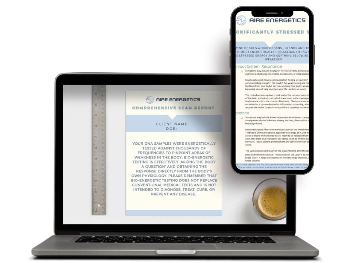 Your DNA will be tested against thousands of different frequencies. This report will highlight the energetic imbalances that are most impacting the eyes.